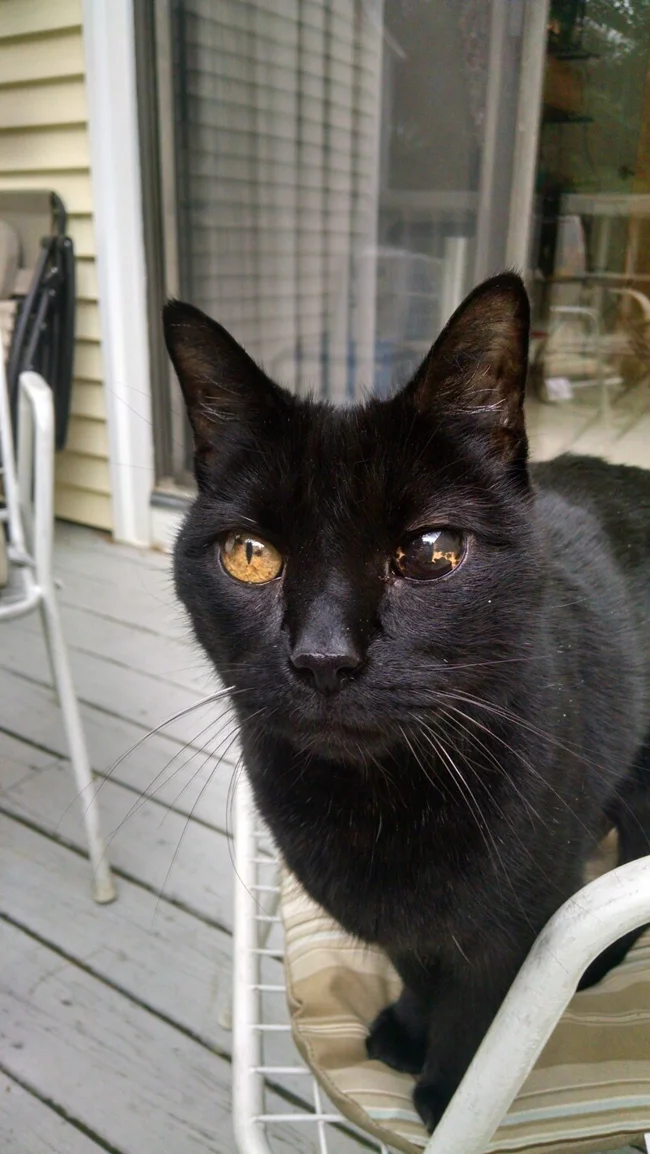Я встретил кошку, у неё избыток меланина в одном глазу, но она прекрасно видит