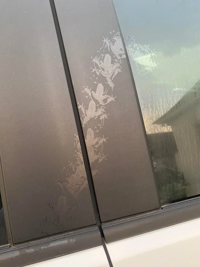 Лягушка оставила свои следы на машине