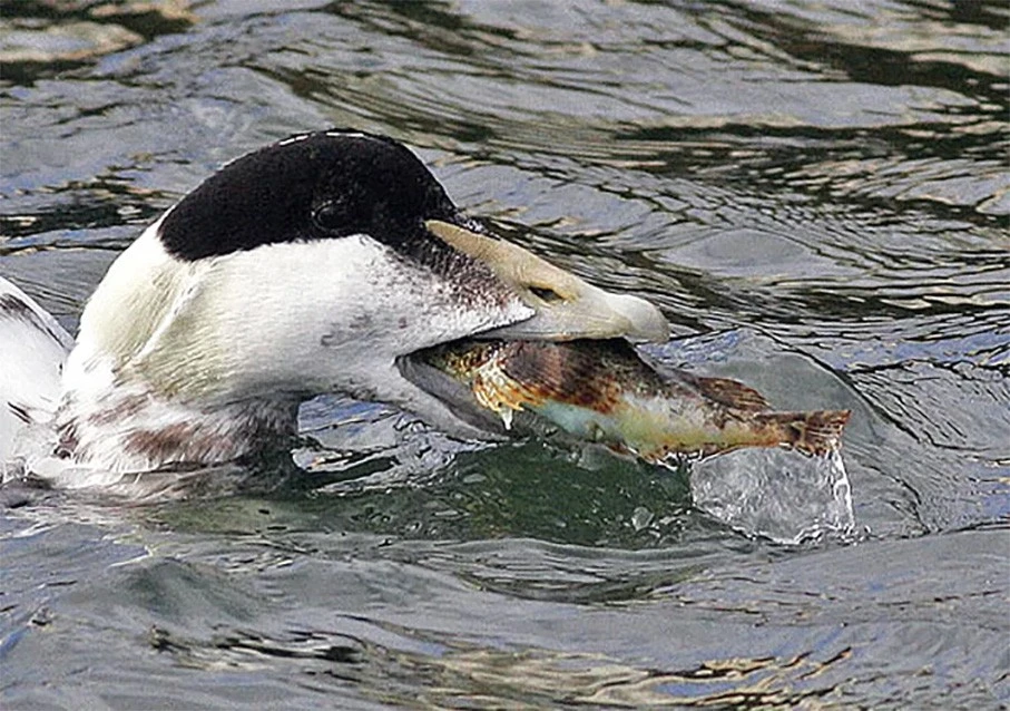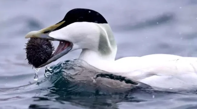 У гаги, как и у всех уток, есть мускульный желудок. Тебе он больше известен как «утиные желудочки», которые продаются в «Ашане» на развес. Этот орган создан с одной целью — механическое уничтожение. Но у гаги он настолько крут, что способен перетирать даже створки моллюсков и иглы морского ежа в труху!