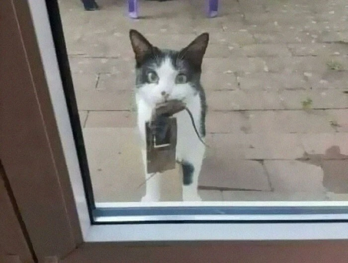 Котенок сгрыз кабель для зарядки телефона и принес своему хозяину змею в качестве замены.
