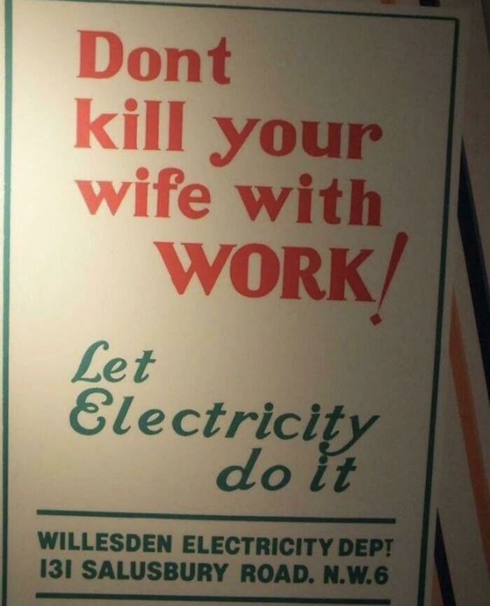 "Не убивайте свою жену работой! Позвольте электричеству сделать это"