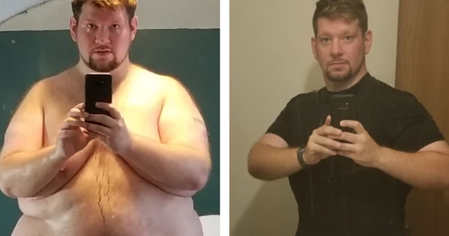 18. "Фото слева было сделано ровно 3 года назад, я тогда весил примерно 270 килограмм. Сейчас я вешу 104".
