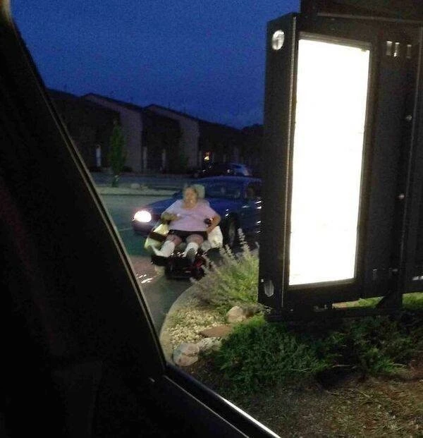 "Позади меня - необычное транспортное средство, которое направляется в "Макдоналдсе" к окошку для водителей
