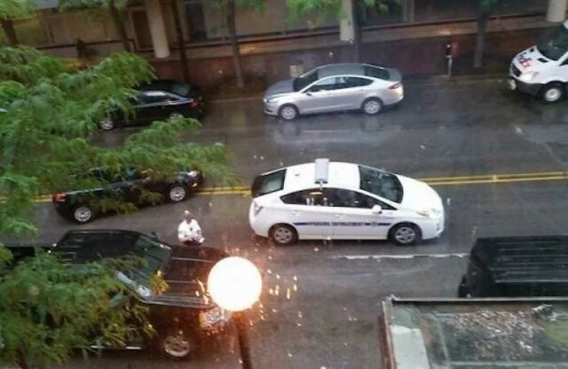 "Снегопад был три дня назад. Оживленная улица, полная машин, почему-то оказалась самым лучшим местом, чтобы очистить лобовое стекло от его последствий"
