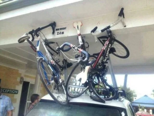 Когда везешь домой велосипеды с дачи, главное - не забыть об этом по дороге!