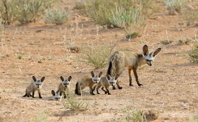 Большеухие лисицы стараются селиться там, где чуть больше растительности. Так можно спастись от палящего солнца.