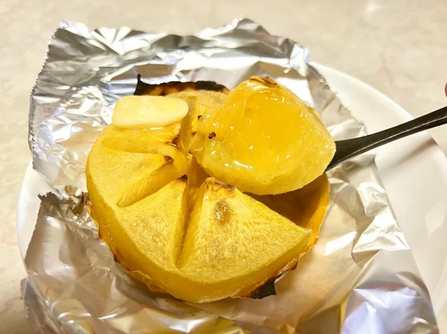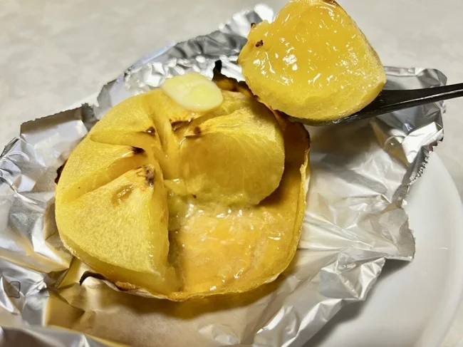 Запеченная хурма становится более сладкой, мягкой и ароматной, а сочетание сливочного масла с ее мякотью придает неповторимый вкус.