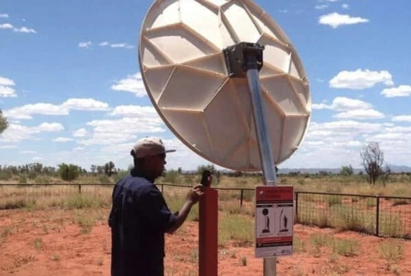Точка доступа для сотового телефона в Австралии. Установите телефон на столб, и тарелка фокусирует сигнал на ближайшую вышку