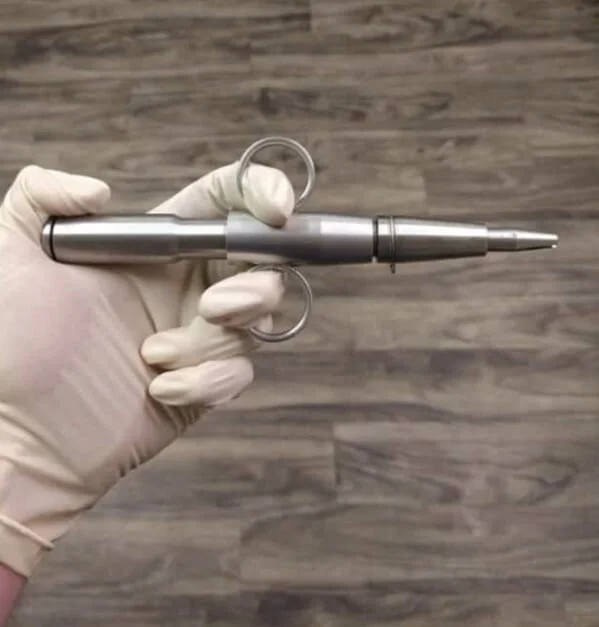 Этот игольчатый инжектор - инструмент патологоанатома, он предназначен для зашивания рта покойникам