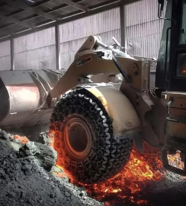 Эти шины из прочных металлических цепей используются в условиях максимального жара на сталелитейных заводах