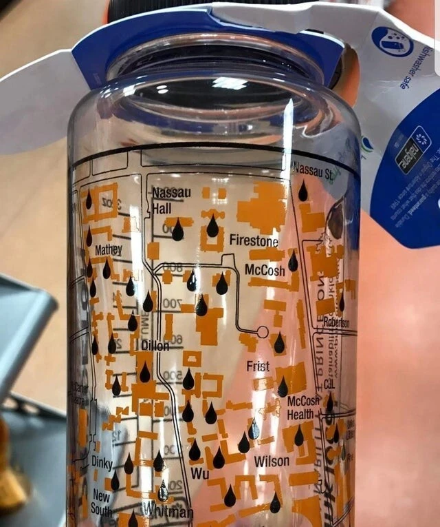 Колледжи делают бутылки воды с картой кампуса на ней. Она также показывает места, где вы можете её наполнить