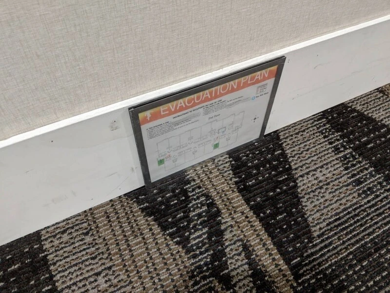 Во многих отелях есть планы пожарной эвакуации на уровне пола, чтобы вы могли их увидеть, если дым заполнил коридоры