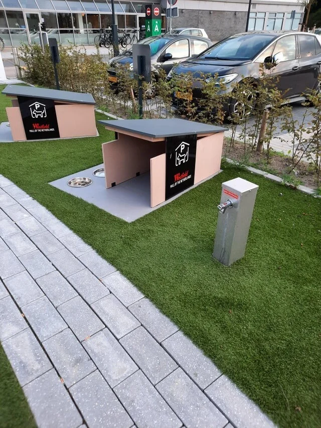 Парковочные места в торговых центрах для собак. В комплекте - миски для еды и воды ![]()