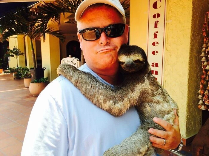 "Мы встретились с этим ленивцем на пляже в Коста-Рике. Он заинтересовался камерой, и решил сделать селфи" ![]()