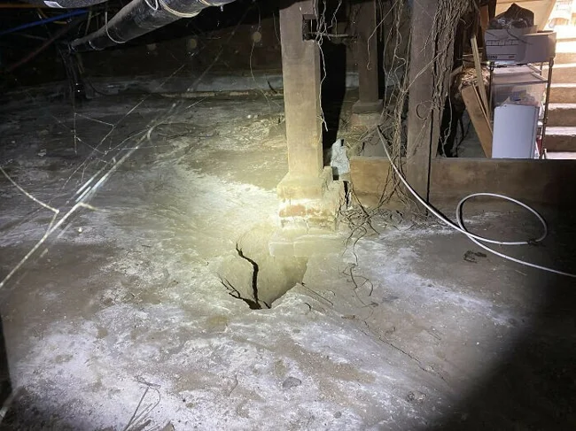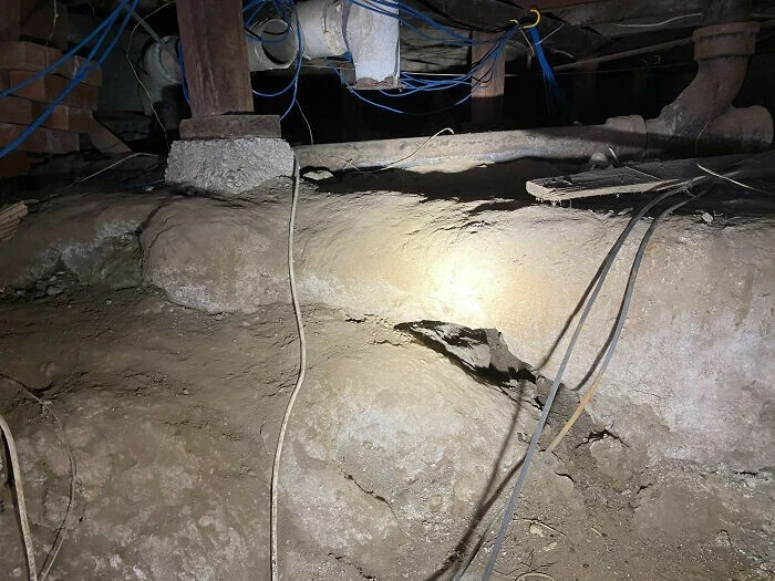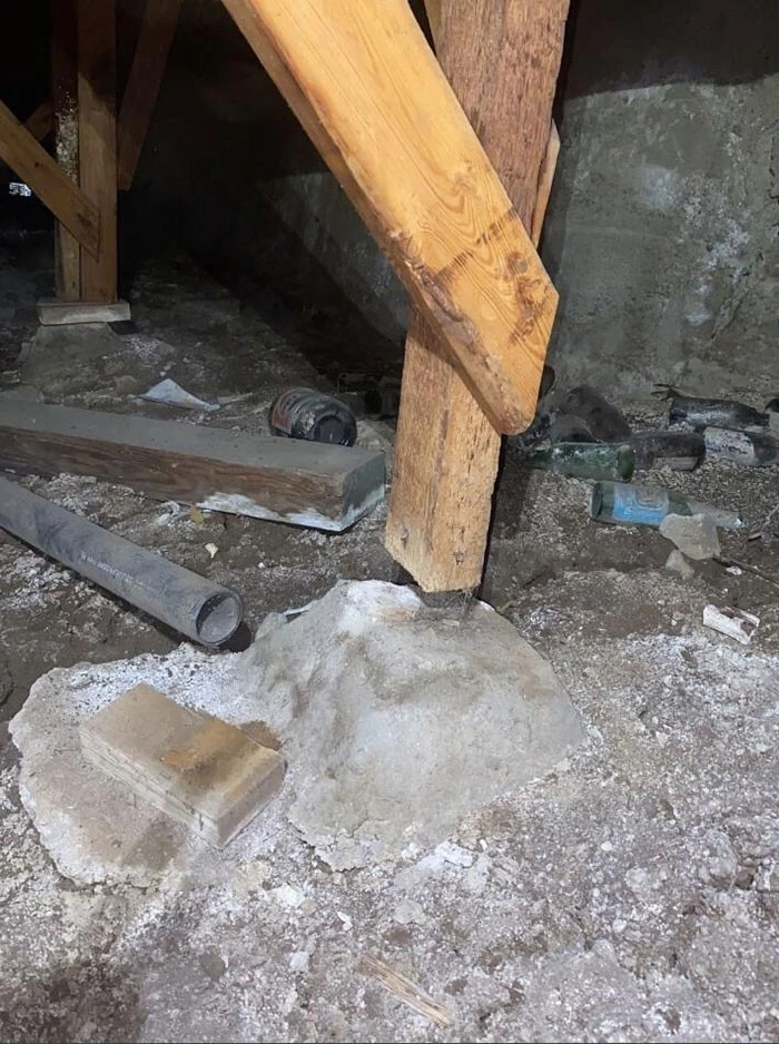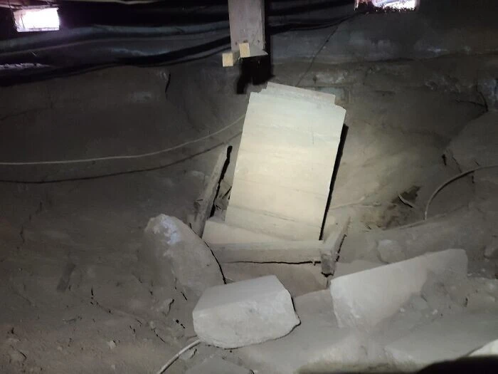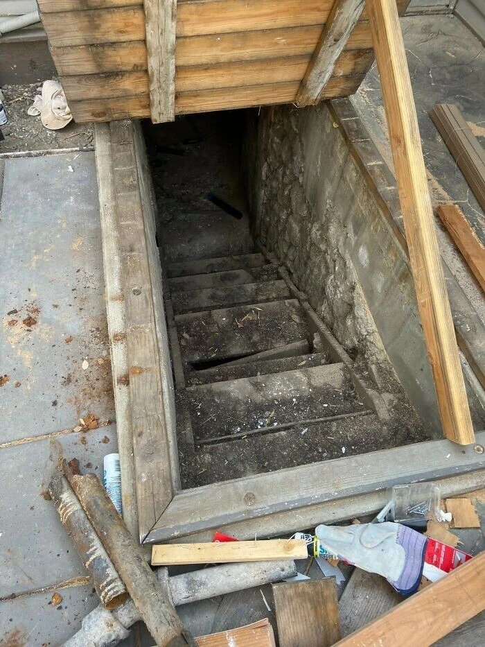 "Каменная опора оказалась в опасной близости от большой дыры в земле. Кажется, владелец скоро почувствует, что полы слегка проваливаются"