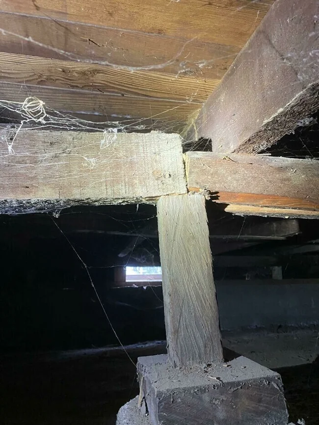 "Вы видите наихудшую гниль каркаса, с которой мы когда-либо сталкивались при осмотре. Нельзя даже прикоснуться к этой стене, чтобы все не развалилось"