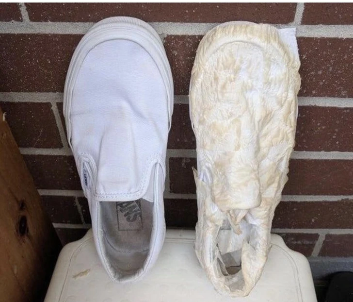 4. Заверните белую обувь на время сушки в туалетную бумагу, чтобы уберечь ее от желто-коричневых разводов