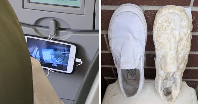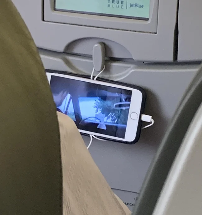 5. «Один парень в самолете повесил телефон на крючок с помощью провода от наушников»