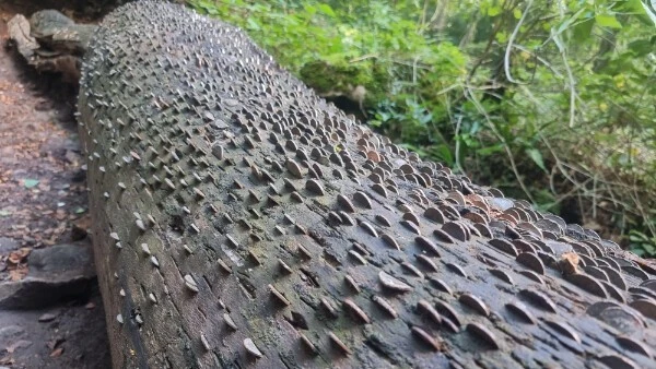 24. Бревно, утыканное монетами. Найдено в сельской глубинке в Уэльсе