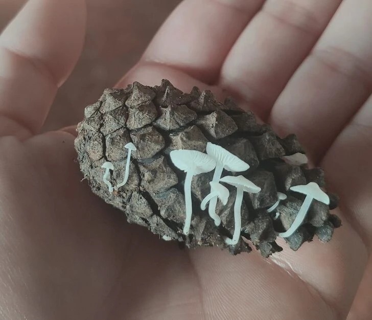 Грибы, растущие из шишки