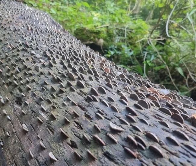Бревно с монетками. Лесной банк?