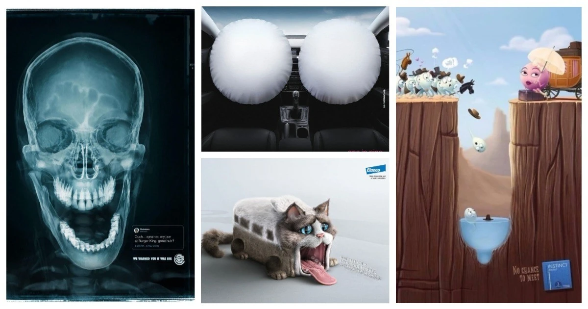 реклама, как известно, бывает разная - скучная, простая. обычная, навязчивая, а бывает гениальная, где один всего лишь штрих сразу покат вам что хотел сказать тот человек, придумавший этот шедевр.