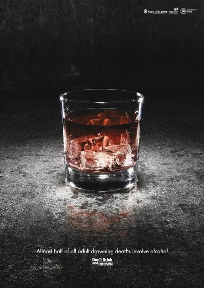 Организация по борьбе с утоплениями, вызванными алкоголем, предупреждает: «Почти у половины всех утонувших взрослых обнаруживают алкоголь в крови»