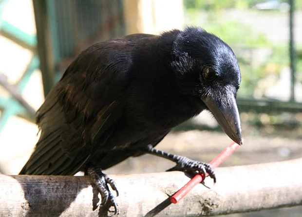 Начнём издалека. А именно, с личинок жуков-усачей. Они — основа рациона новокаледонского ворона. Есть лишь одна проблема: живут насекомые в коре деревьев. Перед птицей стояло два стула: либо ворон прокачает клюв и превратится в очередного долбодятла, либо вкачает интеллект и научится выуживать личинок при помощи инструментов. Как вы могли понять, наш пернатый друг выбрал второй вариант. Так птиц обеспечил себе сытое будущие и фан базу среди учёных-орнитологов. Начались эксперименты.