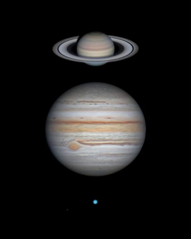 Сатурн, Юпитер и Нептун на одинаковом увеличении.