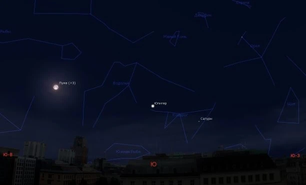 Что за яркая «звезда» сияет над южным горизонтом вечером и ночью?! Это Юпитер — пятая планета от Солнца и четвертый по яркости объект после Солнца, Луны и Венеры (Марс во время Великих противостояний может соревноваться по яркости с Юпитером!). Он св