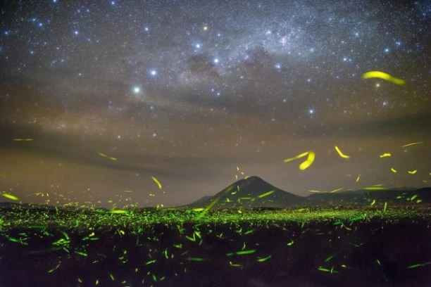 Kapнaвaл cвeтлячкoв и звeзднoe нeбo нaд oзepoм Haтpoн, Taнзaния