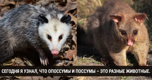 28. Сегодня я узнал, что опоссумы и поссумы – это разные животные. Опоссумы обитают в Северной Америке, а поссумы – в Австралии и Юго-Восточной Азии.