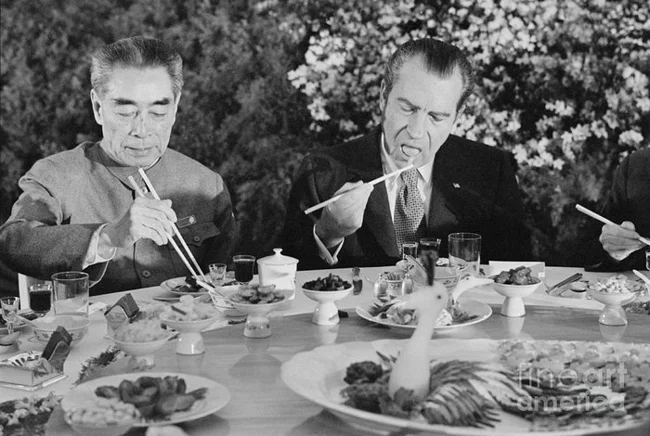 15. Сегодня я узнал, что президент США Ричард Никсон, его жена Пэт и Генри Киссинджер несколько месяцев тренировались есть палочками и даже брали специальные уроки, готовясь к банкету во время их визита в Китай в 1972 году.