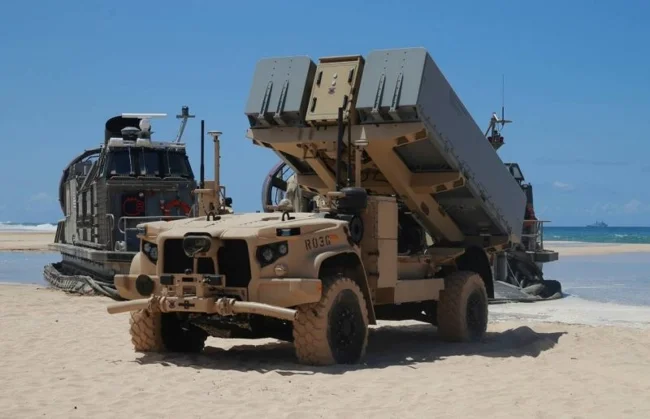 Среди перспективных образцов вооружения, также числится береговой ракетный комплекс NMESIS, который планируют принять на вооружение КМП США в 2023 году (собрав электронные блоки из комплектующих производства КНР прим. авт.). По мнению экспертов, береговой комплекс даст преимущества морпехам в случае обострения ситуации в Южно-Китайском море.