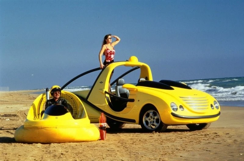 Есть одна особенность, X-Trem перевозит в задней части небольшое судно на воздушной подушке для развлечений на пляже, также может перевозить платформу с мотоциклом и гидроциклом. Еще более безумно то, что черные детали на кузове представляют собой встроенный кран, предназначенный для подъема этого судна или платформы. Еще больше веселья добавляет двигатель V8 от Mercedes мощностью 347 л.с., что делает его достаточно быстрым для такого дикого дизайна.