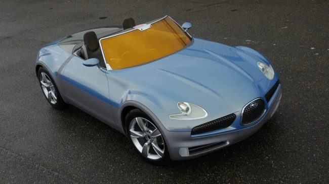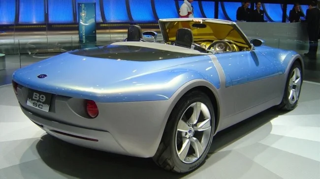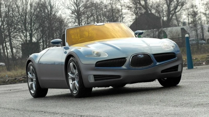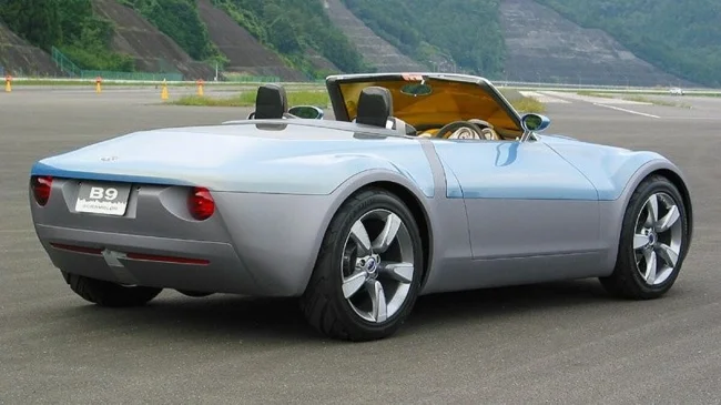 B9 Scrambler, развивающий мощность 270 л.с. с гибридной трансмиссией, дебютировал в 2003 году и обладал множеством передовых функций, таких как самовыравнивающаяся пневмоподвеска. Но дизайн также выделяется своей уникальностью, сочетая традиционный стиль родстера с предполагаемым видением будущего Subaru.