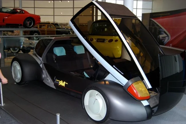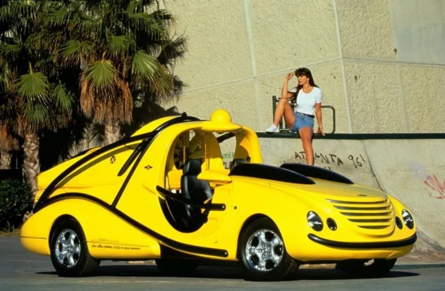 Плимут сотрудничал со студентами университета, чтобы разработать дизайн Slingshot, что привело к его уникальному дизайну. Из обычного тут только установленный сзади двигатель с турбонаддувом. А вот дизайн и сегодня выглядит уникальным и футуристическим.