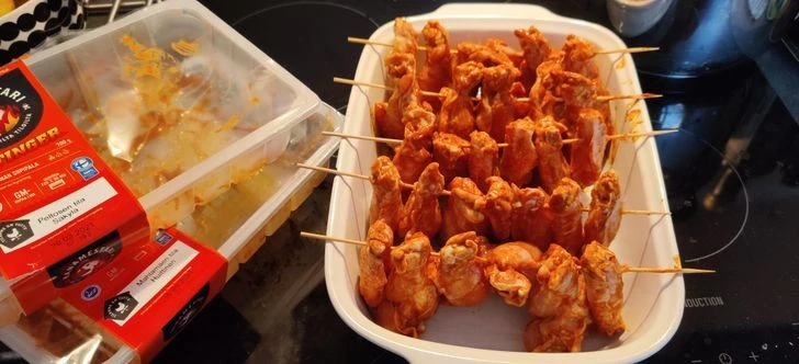 17. Как приготовить больше крыльев за раз и лучшего качества: не кладите их в форму для запекания, а насадите на деревянные шпажки.