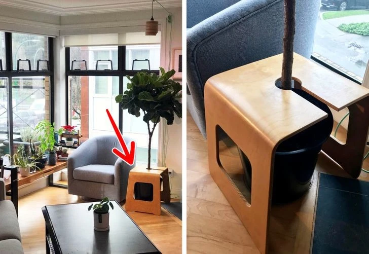 5. Стильная экономия пространства: если сделать в журнальном столике разрез в форме замочной скважины, его можно будет объединить с комнатным растением