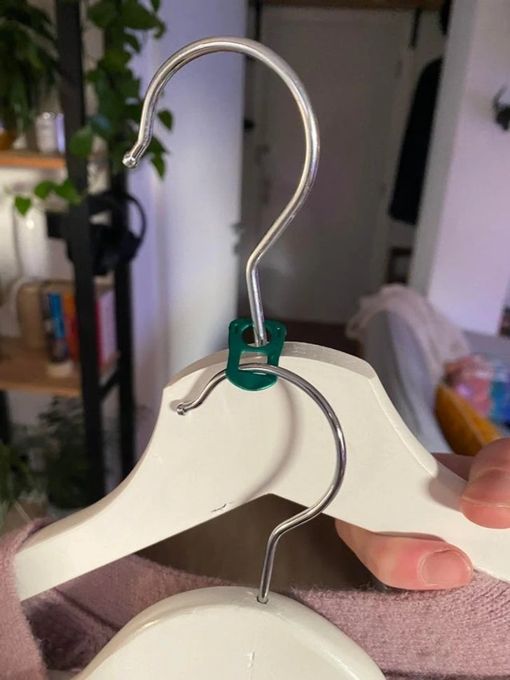 1. Чтобы сэкономить место в шкафу, вешалки можно соединить между собой с помощью язычков из-под банок пива или газировки