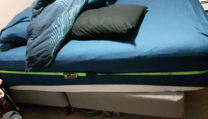 6. «Моя девушка во сне стягивает с матраса простыню. Я, будучи хорошим парнем, придумал решение».