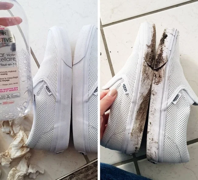 3. Грязные кроссовки можно очистить с помощью мицеллярной воды.