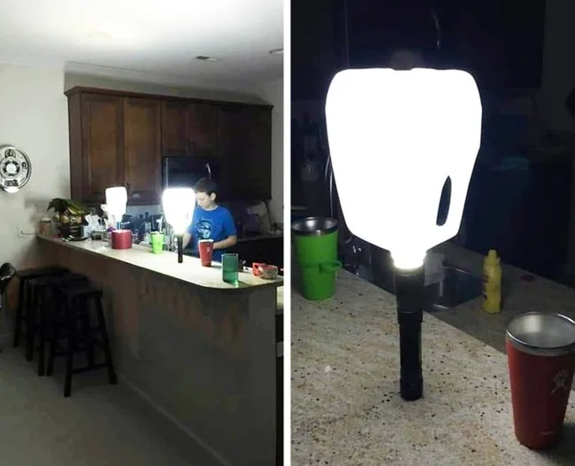 13. «Если в доме отключили электричество, с помощью пустых полупрозрачных канистр из-под воды можно значительно увеличить светоотдачу фонарика. Работает на отлично».