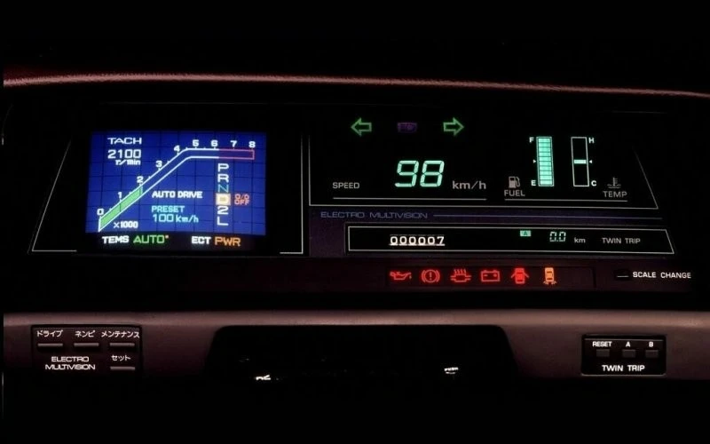 80-е это бум цифровых приборных панелей. Каждый из автопроизводителей старался придумать что-то оригинальное, но дальше всех пошли в Субару в модели XT, установив приборную панель с эффектом 3d.