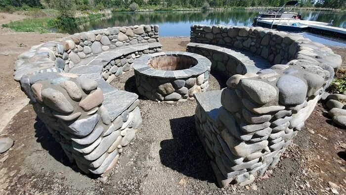 "Я совершенно самостоятельно построил вот такую зону для костра и барбекю у озера"
