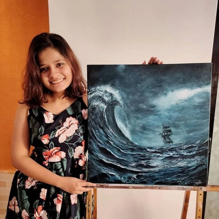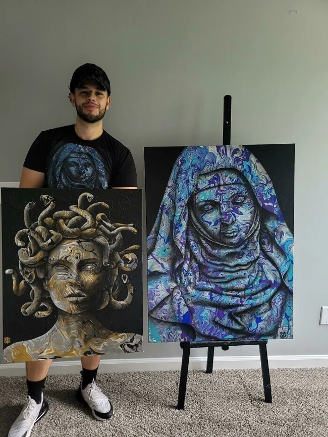 "Это две моих картины. Техника - рисунок поверх акриловой заливки"