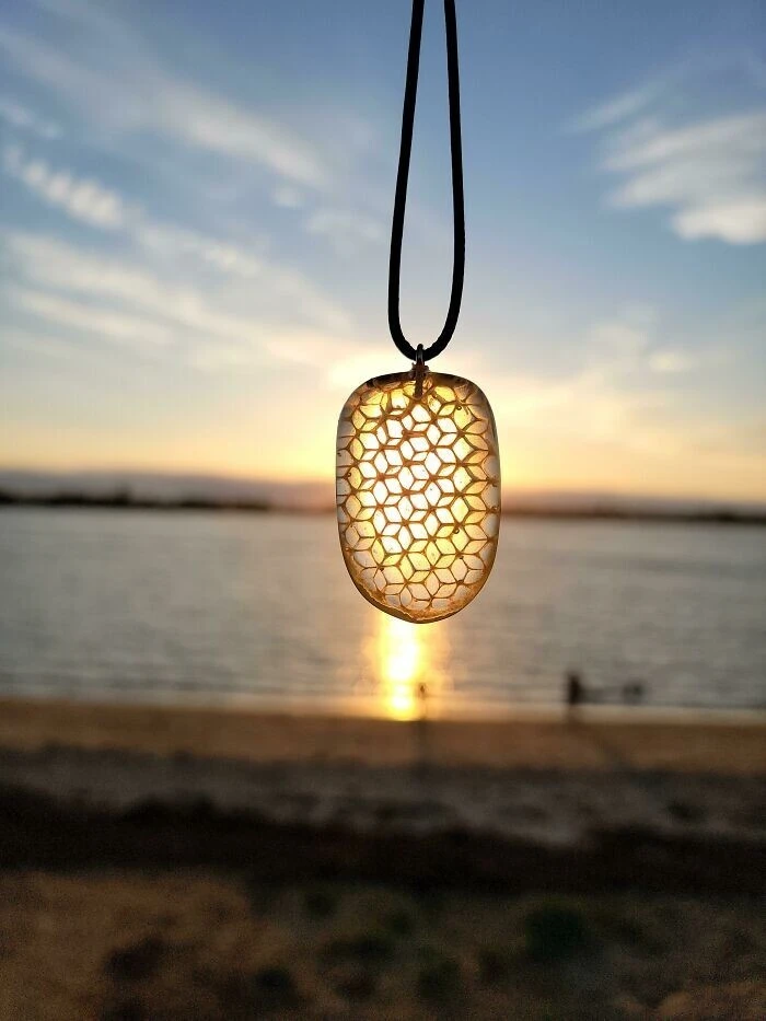 "Я пчеловод, и я сохраняю натуральные соты, которые нахожу внутри ульев, залитыми смолой в подвесках и других произведениях искусства"