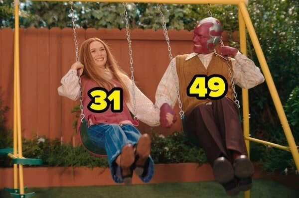 5. В сериале "ВандаВижен" Элизабет Олсен 31 год, а Полу Беттани - 49 лет