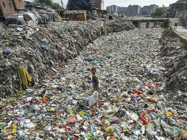 2. Мальчик собирает вторсырье в превращенном в помойку водостоке. Таймур-Нагар, Нью-Дели