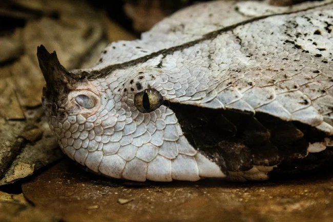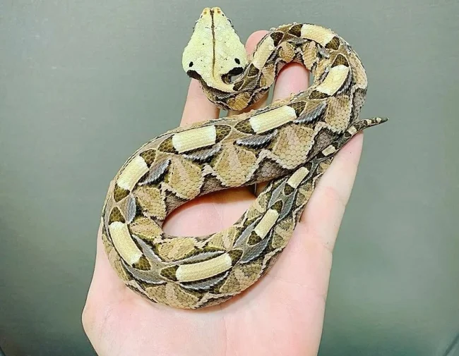 Габонская гадюка: Смертельно опасная рептилия, которую сложно заставить укусить, даже если держать на руках (6 фото)